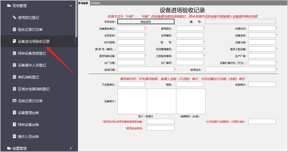 设备进场验收记录