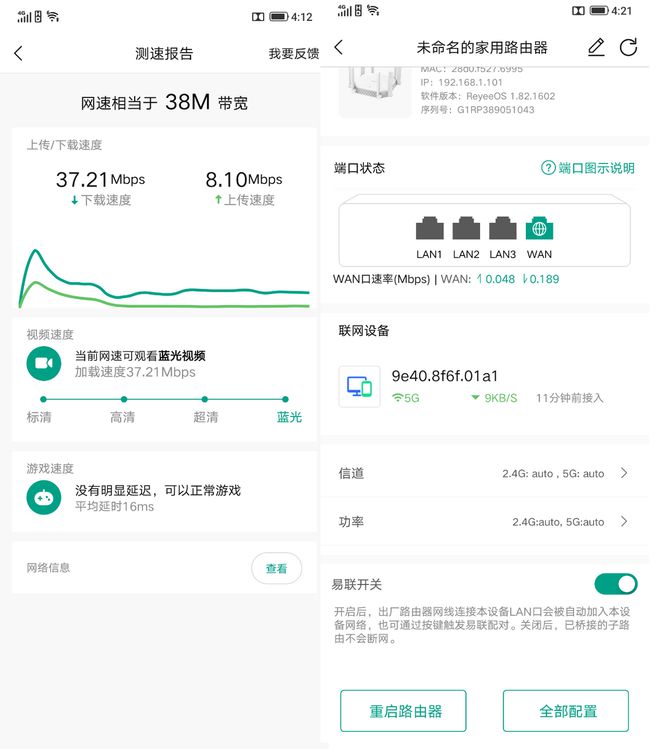 如速度测量所示,下载速度为37兆字节,上传速度为8.1兆字节,延迟网络为16米,多机器连接时波动性较小,因此更适合家庭成员较多的小伙伴。