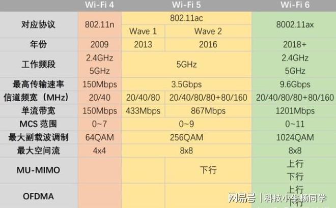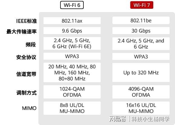 看得还是一脸懵逼?那简单来说就是,WIFI7有可能产生比WIFI6更快的无线信号。频率范围也从原来的2.Add增加6千兆赫至4千兆赫和5千兆赫波段,以适应不断增加的数据通过量。带宽也从160兆赫增加到320兆赫。WIFI的信号也会更稳定链接的装置数量也翻了一番多。前一链接分别是2.44千兆赫和5千兆赫之一。如果您想要更改它, 您必须手动操作 。WIFI7可根据信号强度和弱点自动交换频带。更加智能。