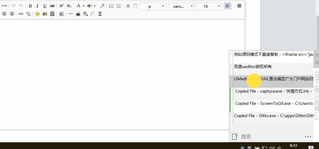 ditto 是可用快捷键 ctrl+ 访问程序面板的剪贴板增强工具 。