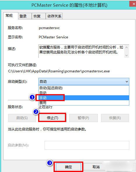 5. 设置手动启动类型,并单击确认按钮取消服务,如下图所示: