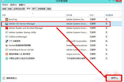 2. 如下图所示,选择不需要启动应用程序,程序通过点击 " 禁用 " 按钮重复: