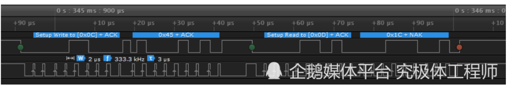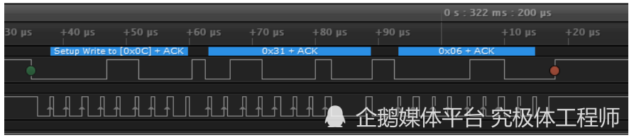 当时钟信号SCL为高高度时,自失能信号被改为低高度,主设备启动起始信号。