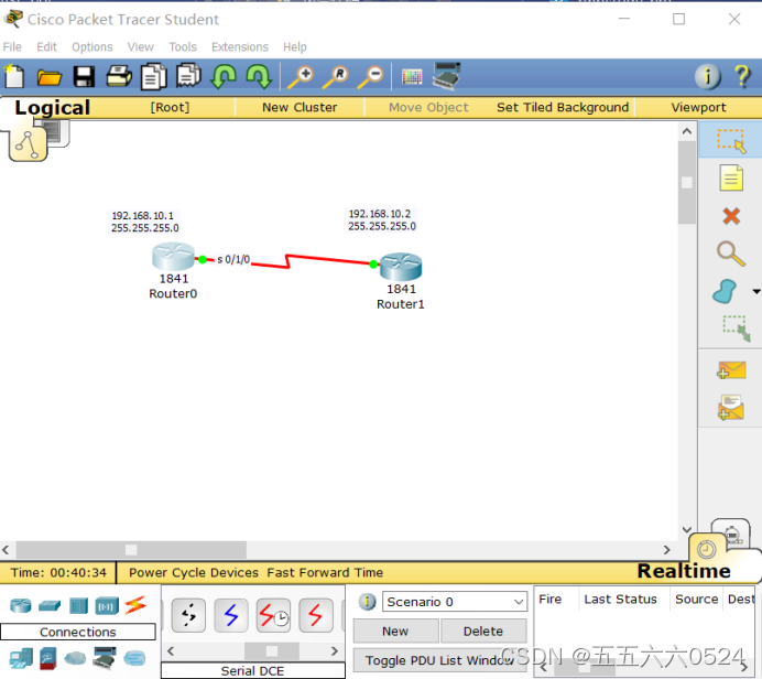 路由器提供广域网接口(空中高速同步接口)。为了连接广域网接口,使用V.35电缆连接。DCE(数据通信设备)位于广域网连接的一端。DTE(数据终端)是终点。必须在DCE端指定时钟频率(时速),以确保连接。