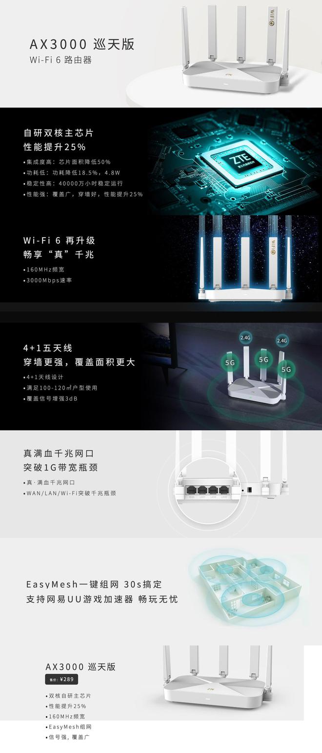 此外,AX 300天行者还包括一个千兆字节网关,用于支持EasyMesh系统30秒完成和网络友好UU加速器。