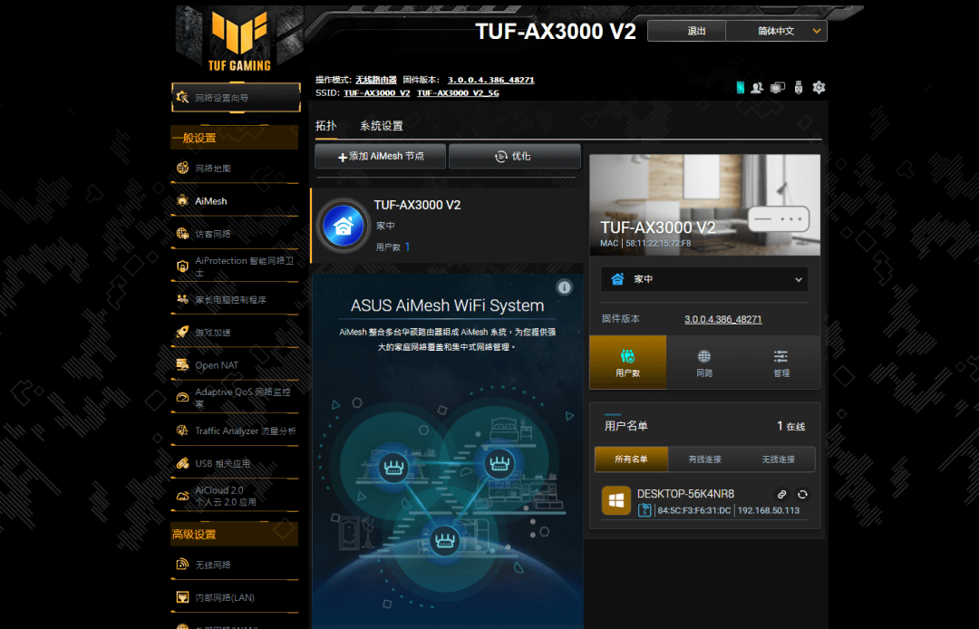 作为无线路由器TUF GAMING也携带Aimesh2。到目前为止,整个系列都有街道路由器上的功能。艾美什2"O的兼容性很好支持多达9个设备联合组装网络和多个CPU平台。这个路由器可以作为AiMesh的主要路由器。也可以用作AiMesh节点。此外,还增加了WPA3无线加密能力。整体安全性更高。
