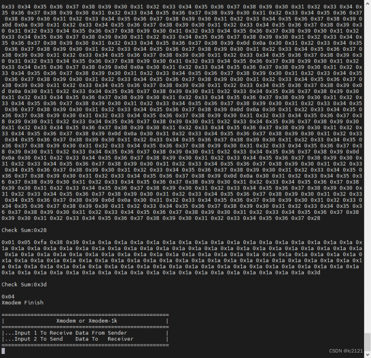我们可以看到在当 SecureCRT 将程序中的软件包配置为 1024 ,在实际分发过程中,最终的软件包基于文件的剩余数据大小,即小于 128 使用的字节为标准字节。 Xmodem 数据包大小。
