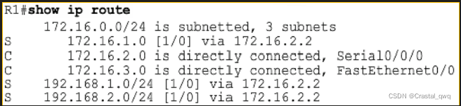 R3(config)#ip route 172.16.0.0 255.255.252.0 serial0/0/1