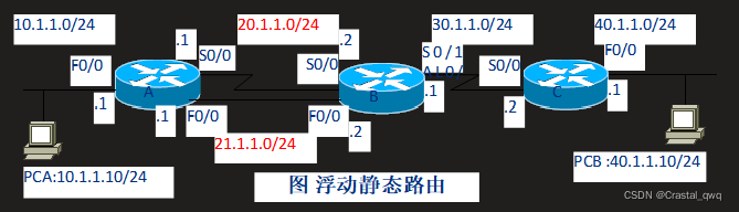 RTA(config)#ip route 40.1.1.0 255.255.255.0 20.1.1.2 10