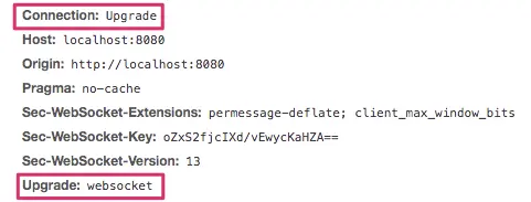 浏览器对服务器的请求将包括 WebSocket 相关信头, 如连接: 升级和升级: websocket 。