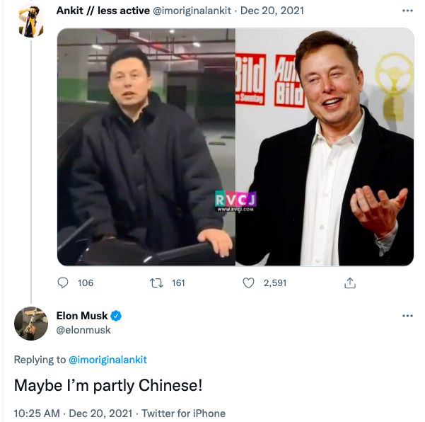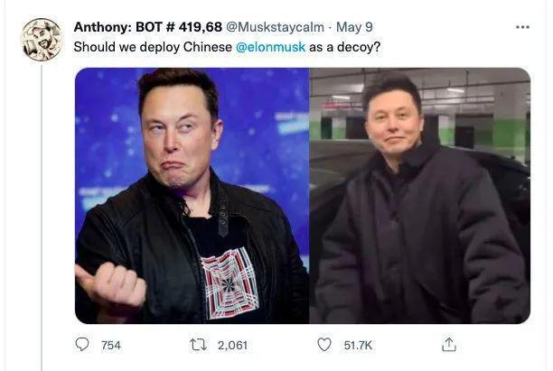 最近一位Twitter熟人试图比较Musk与“中国面具”的对比,