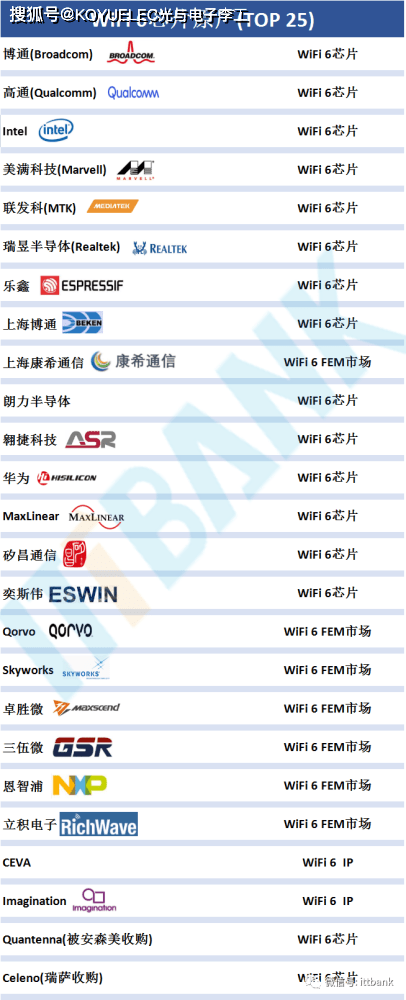 最近,WiFi 6芯片厂(TOP 25)和TST Jia Jin有许多WIFI6设计。