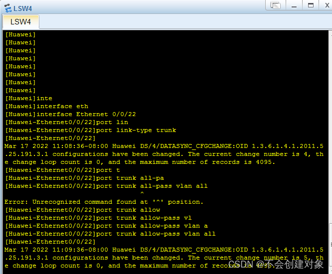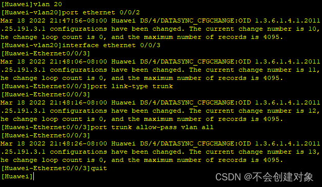 [Huawei-Ethernet0/0/22]port trunk allow-pass vlan all