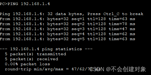 3个PC1和PC2无法进入PC4或PC3,因为它们的港口属于不同的VLAN,它们的网络没有连接。