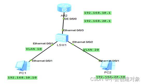 一. PC1可以是 G0/0,使用路由器的子接口1 连接。因为PC1的港口是VLAN10的一部分G0/ 0 路由器子接口。 一个端口属于 VLAN10 。连接到路由器端口的开关设置为 TRUNK 。将港口设为TRUNK港口。然后,该港口将使所有VLAN通信能够畅通无阻。