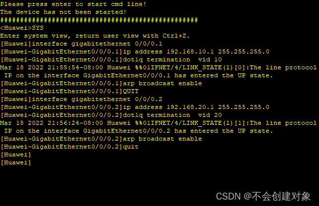 [Huawei-gigabitethernet 0/0/0.1]quit