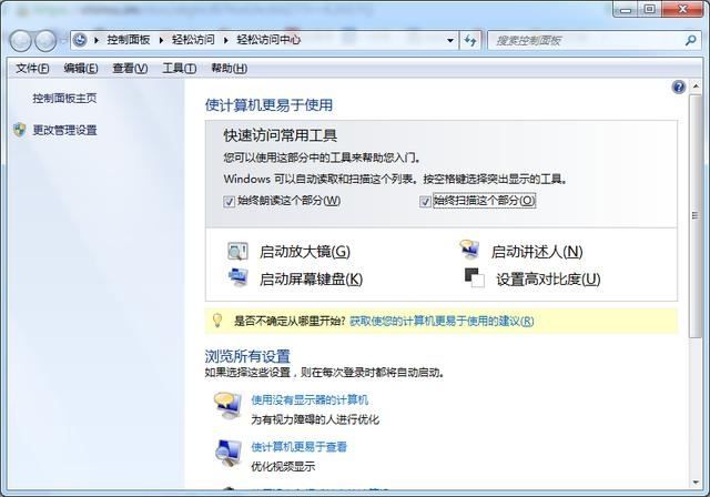 Windows7操作系统使得绕着核心、放大镜、屏幕键盘和各种“使计算机更方便用户”的设置运行变得简单。