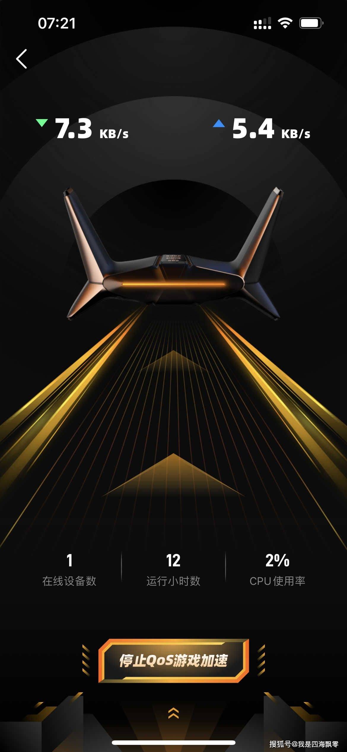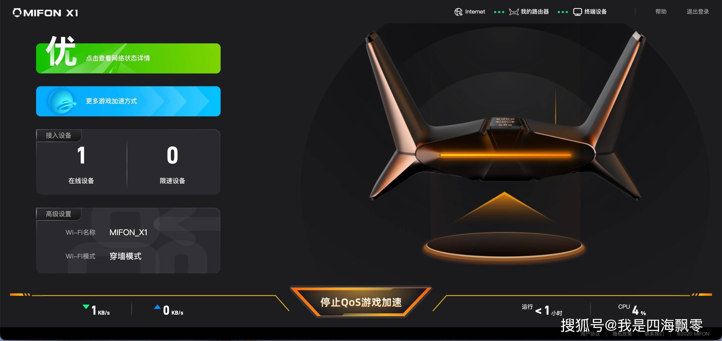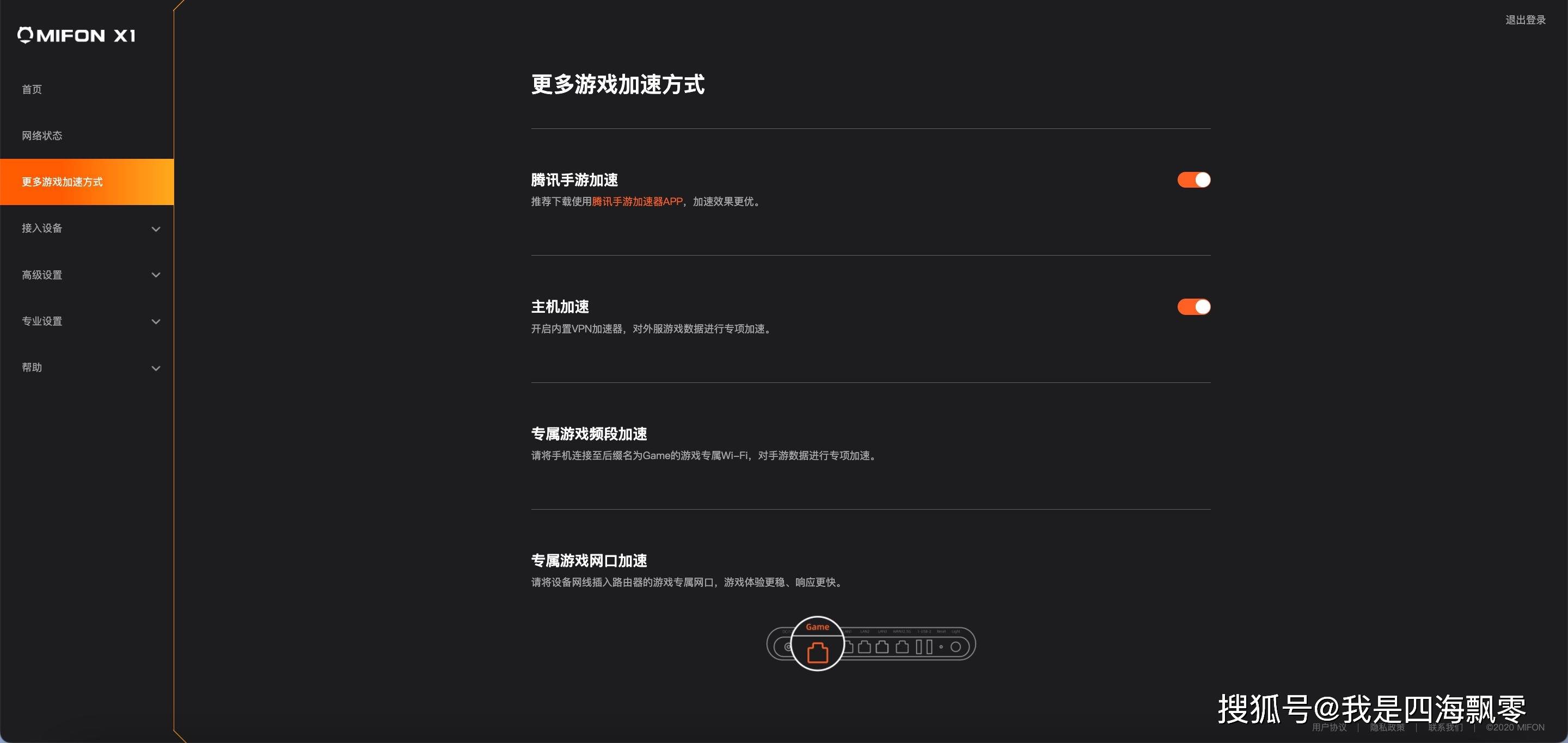 MIFON X1 电路由器将 Qos 游戏加速度设置转换成橙色 LED 灯光。