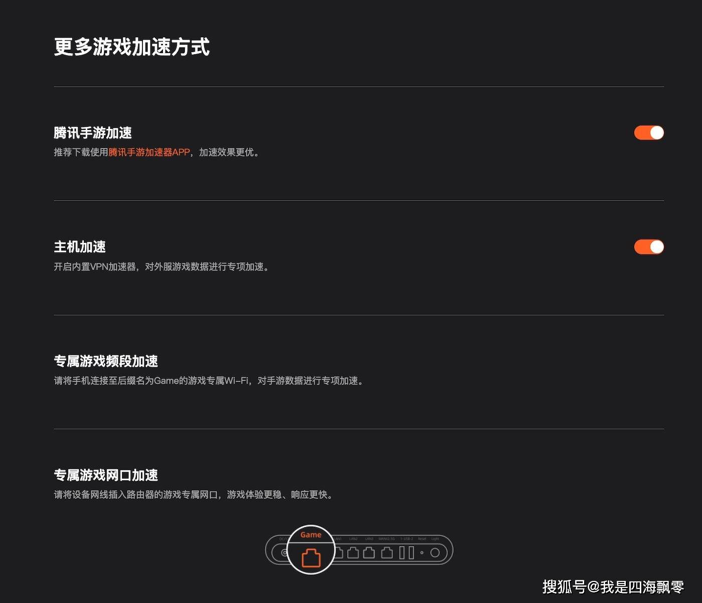 开关 Qos 游戏加速度, 显示橙色 LED 灯光 。