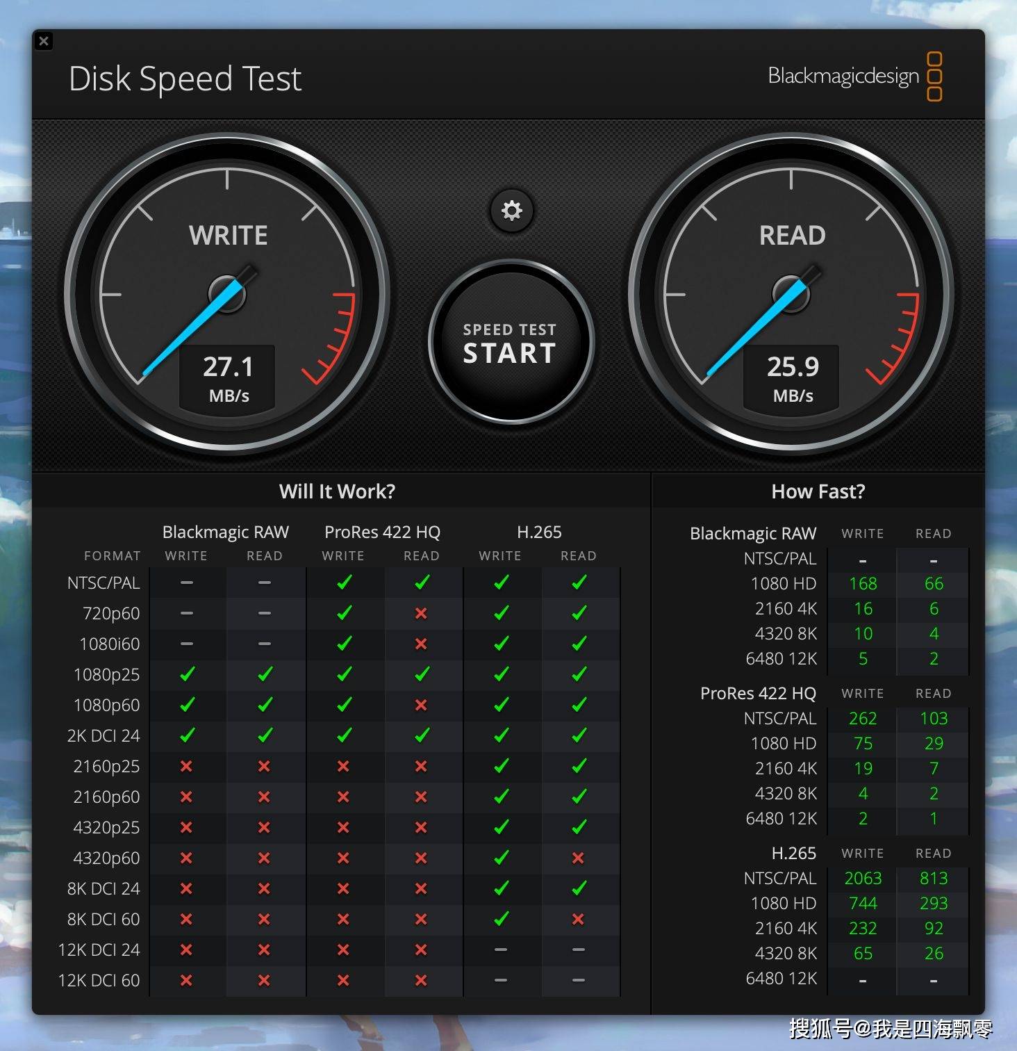 连续写作:27.1MB/s,连续读数:25.9MB/s,用磁盘SpedMac测试测量。