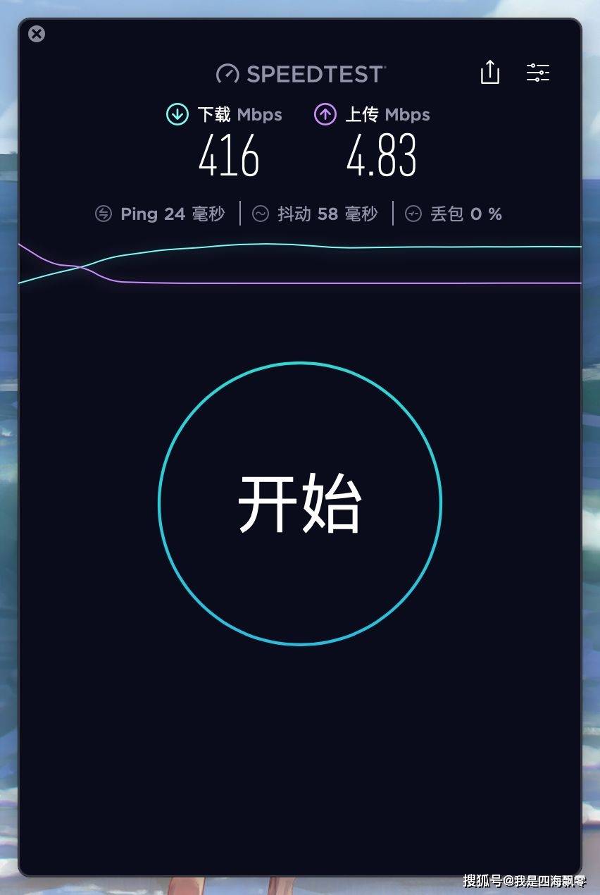 5G连接,SpeedTest For Mac 版本速度测量,下载:416 Mbps,上传:4.83 Mbps