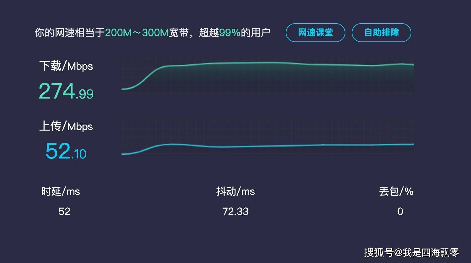 5G连通、52.0毫秒的传输延迟度、274.99毫秒的下载速度、52.10毫秒的上传速度