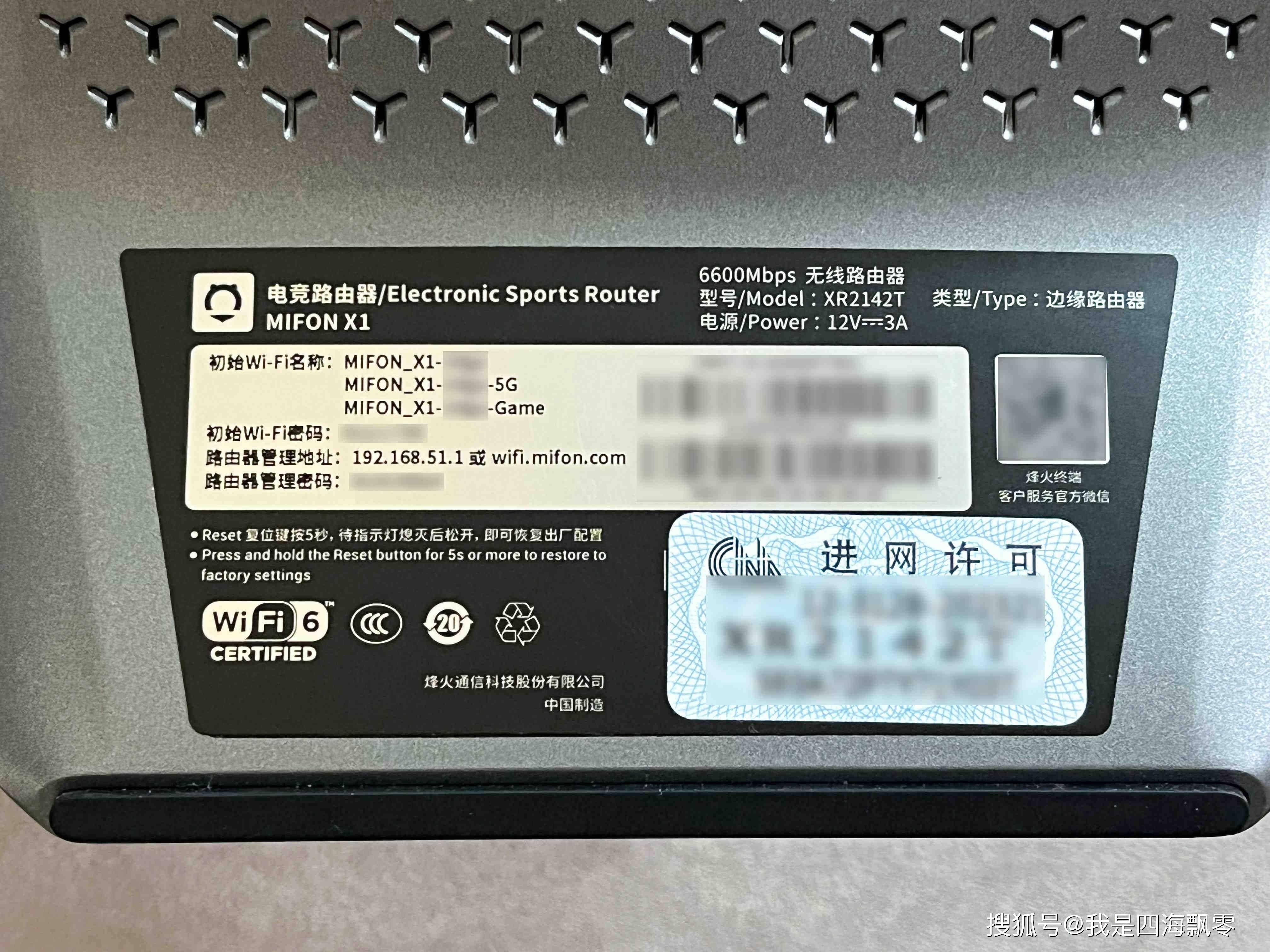 在MIFON X1电子路由器框架之内,有重要信息指标,记录初始无线上网名称、初始无线上网密码、路由器管理地址和路由器管理密码。