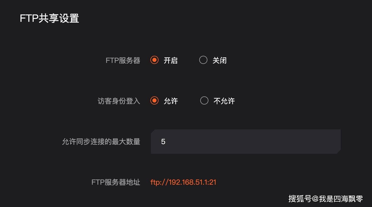 FTP共享设置得到MIFON X1电子路由器的支持。