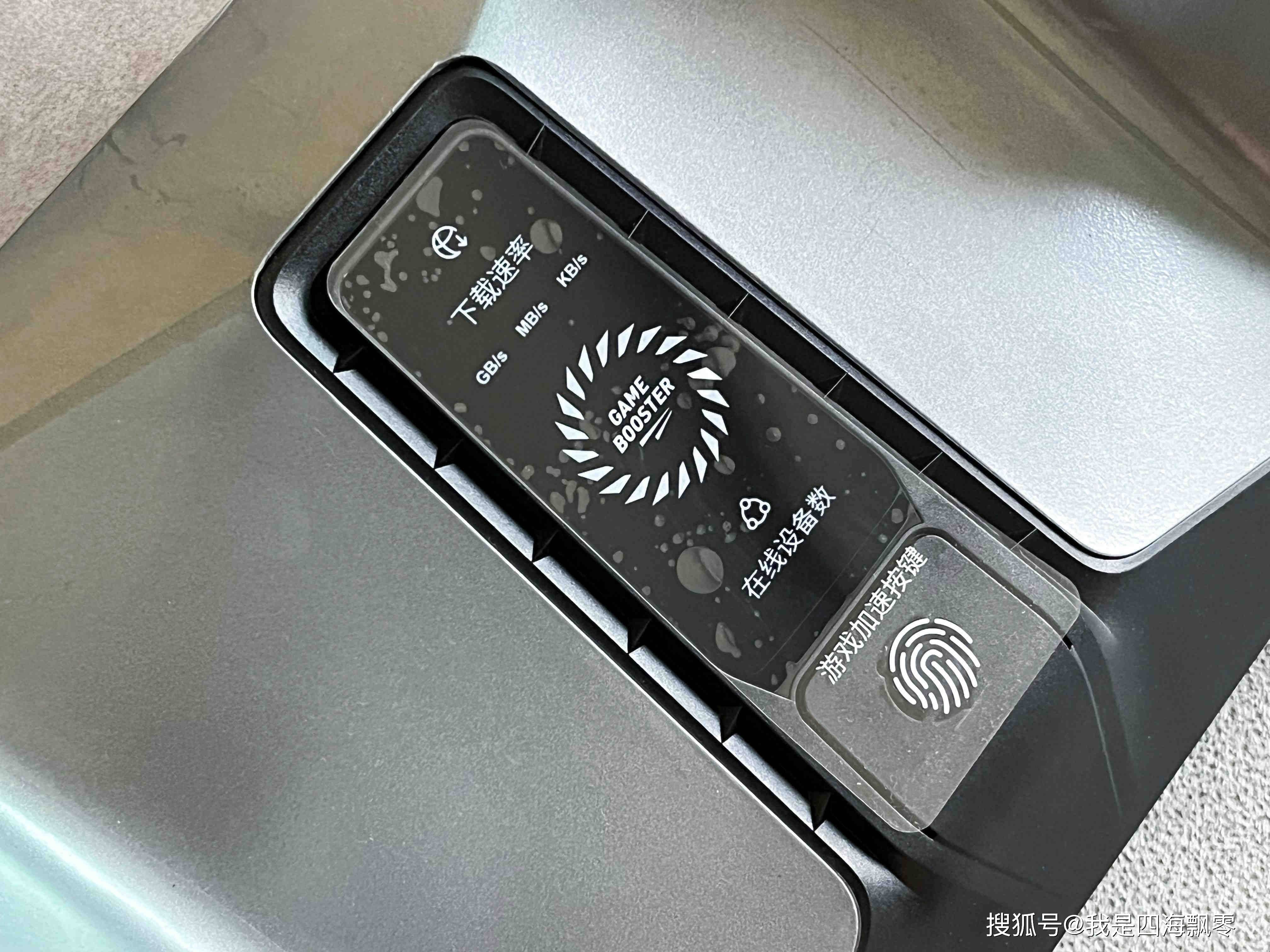 MIFON X1 电子路由器的顶部有一个小屏幕,显示下载率、游戏加速模式、在线设备的数量和游戏加速按钮。 显示在MIFON X1 电子路由器顶部的小屏幕内容可以在初始连接后查看 。
