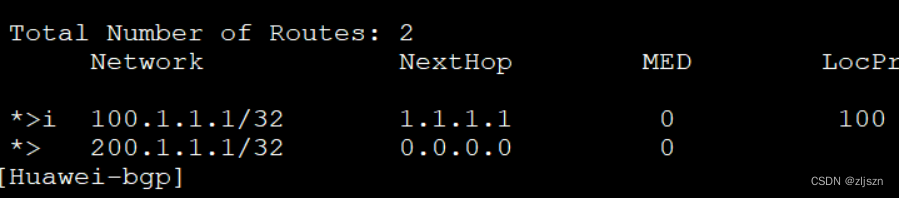 * 表示为有效路线;如果没有*,则标明无效路线;但是,bgp不会增加无效路线。