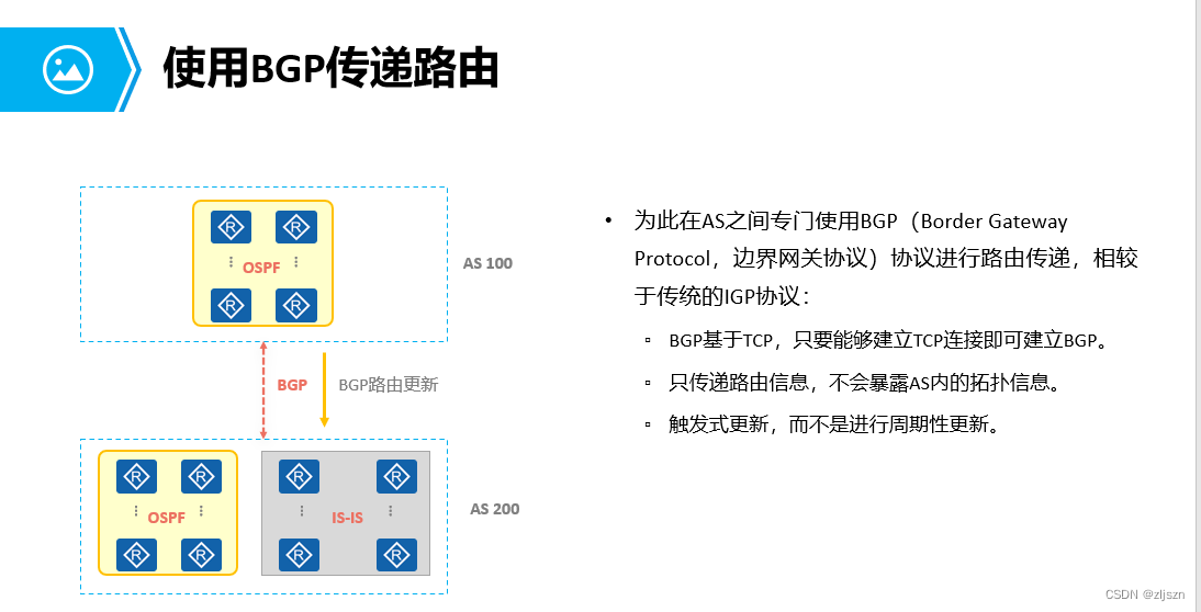 特点:1.BGP 使用 TCP 至于其运输层议定书(港号: 179 ),使用触发路线而不是周期性路线来更新。