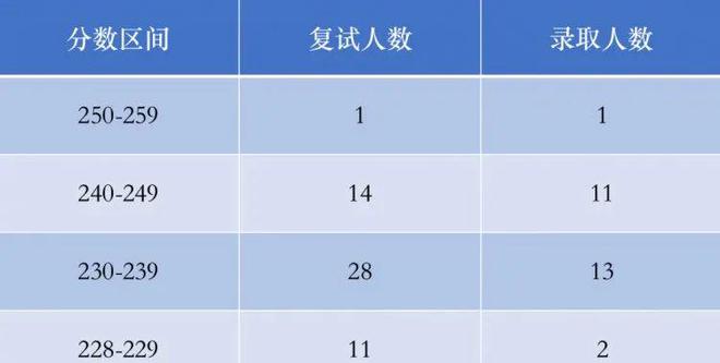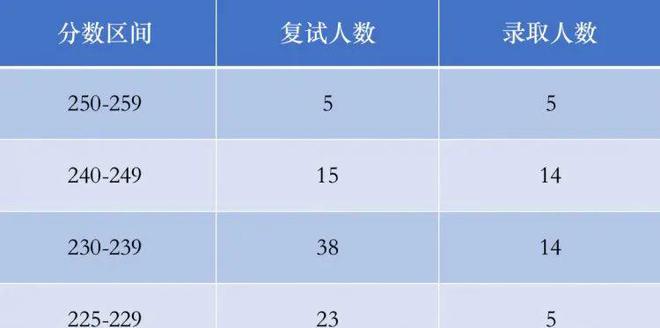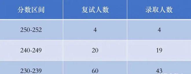 全日制重新测试线230(60/120);84人进入重新测试,最高得分为252,最低得分为230.66,最高得分为250分,最低得分为230分。