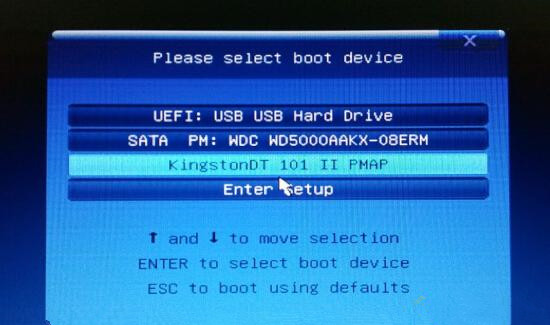2. 这次将推出起始菜单选择框,而检测到的闪存驱动器,如金斯敦DT,将通过按离驱动器的驱动器来选择。