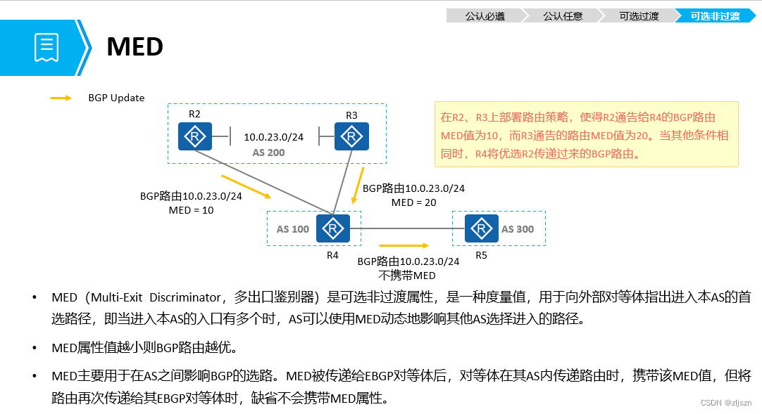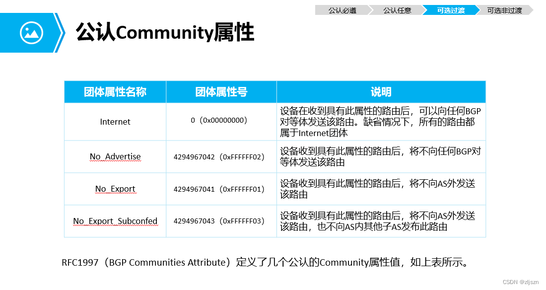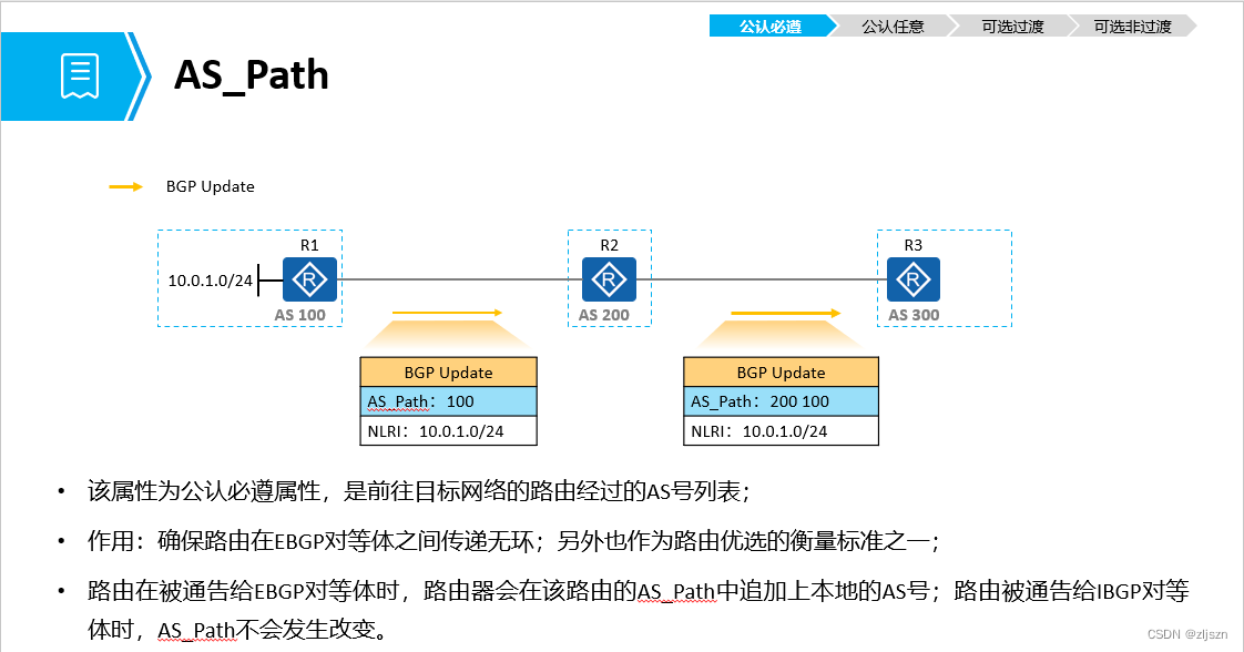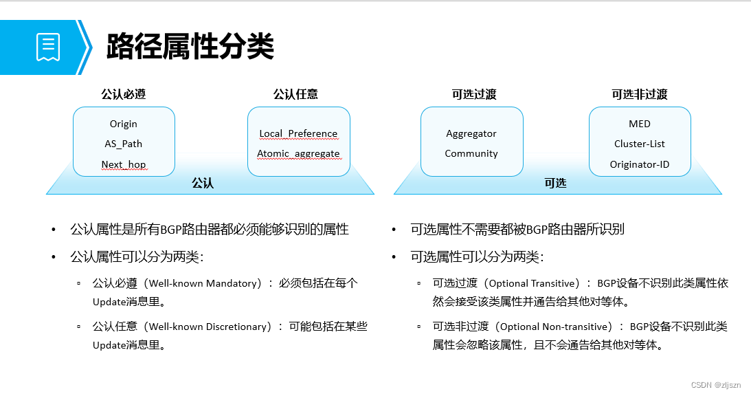 1.公认必遵:它必须包含在BGP更新报告中,路由器必须在收到后能够识别和处理。