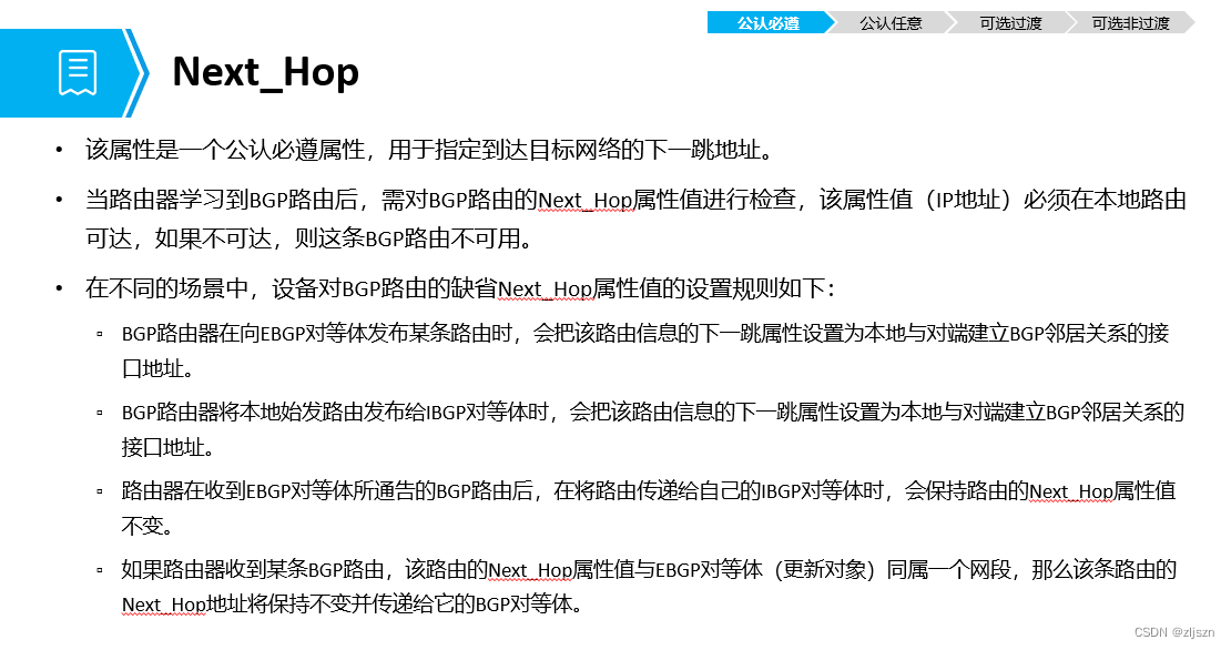 通常承认满足的第三个特征是下一跳。