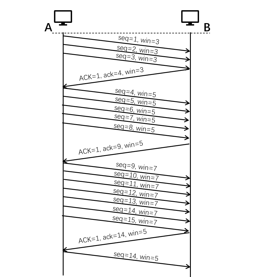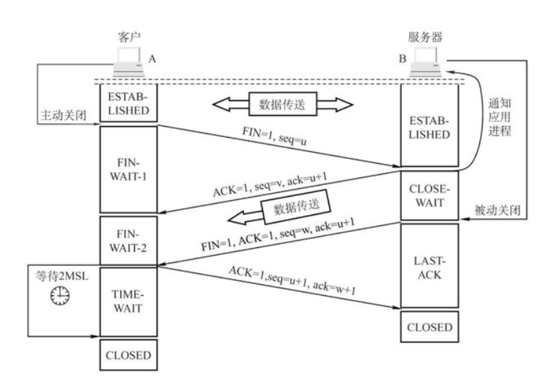 数据发完后,客户端 A 将第一个数据包发送到服务器 B, 其参数如下: FIN = 1 。一旦服务器B收到数据,后续=u(数据量);发送客户端第二个数据包:ACK=1。acknumber = u + 1,然后切断A-点-B链接。因为B现在可能还有进一步的信息要发送因此,B提供给A的FIN数据包没有列入ACK数据包。当B数据可用时,A的第三个数据包由B发送:FIN=1。一旦A得到数据,Seq = w;第四个数据包正在发送到B:ACK=1。seq = u + 1,acknumber = w + 1,然后切断B指针与A的联系四波波已经到头了数据数量载于该过程的序号。