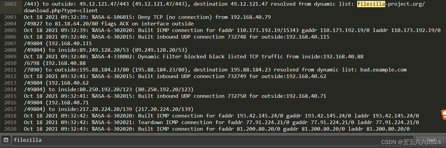有21个。 公司的计算机根据路由日志下载了 FTP 程序。 下载网站的IP 地址是多少? ( 请使用 Alab 编号回复并保存它 。 ) “ 系统” (三分钟)