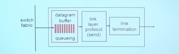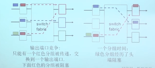 当一个信息交换机构将数据从几个输入港运往同一输出港。交换机构提交数据报告的速度超过产出率,因此需要使用产出缓存;
