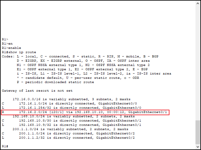 在各接口网段启动RIP协议--------->R2(config-router)#network 172.16.2.0 (路由器g0/0接口连接的网段)