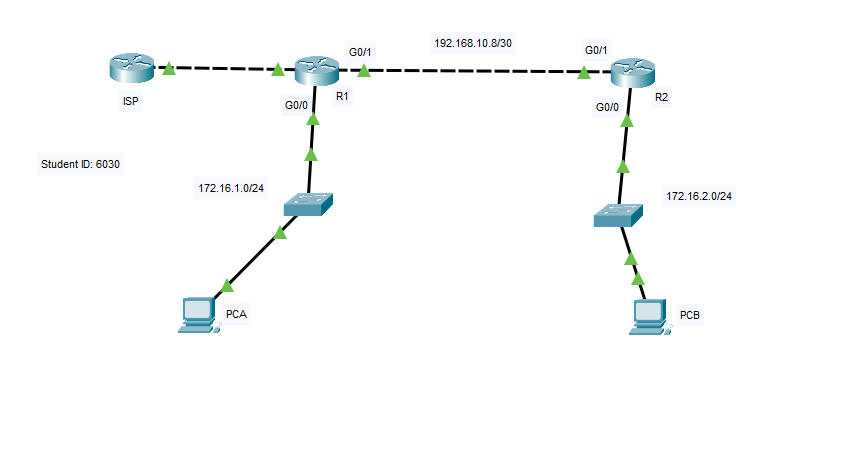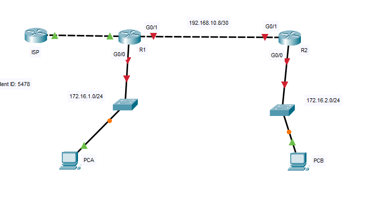 静态默认线路设置在R2上,以使R2网络能够访问ISP。