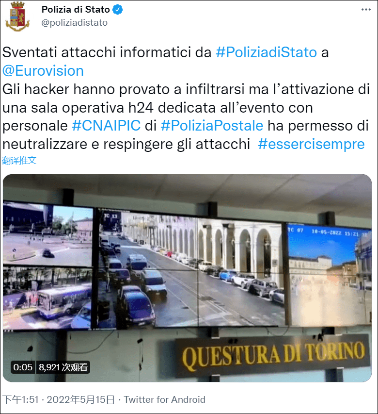 先前,意大利国家警察声称已经派遣了意大利网络防卫部CNAIPIC的专业团队“压制和拒绝”俄罗斯黑客“Killnet”及其副作用“Legion”。欧洲歌唱大赛对投票机器和欧洲电视网络基础设施的袭击。