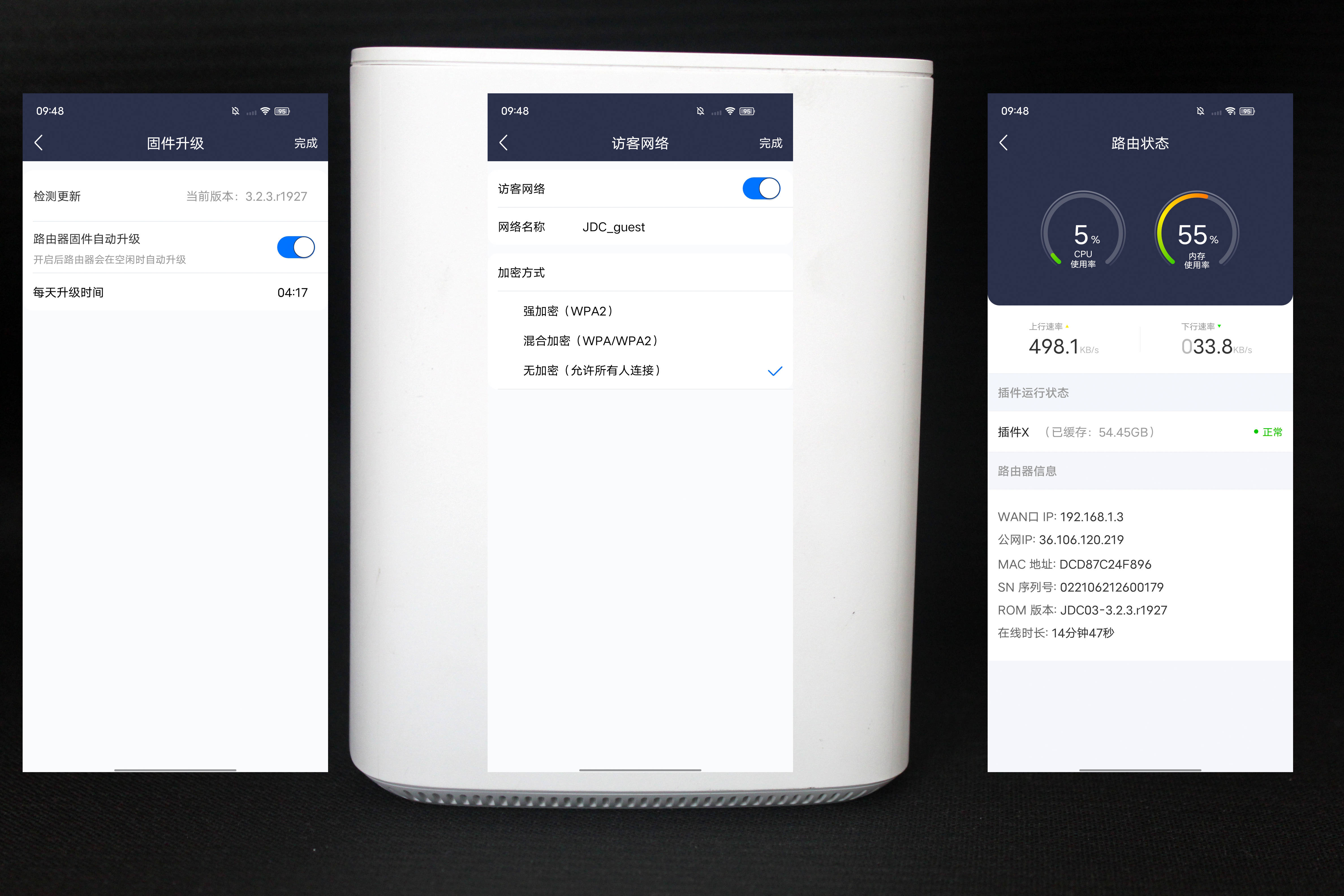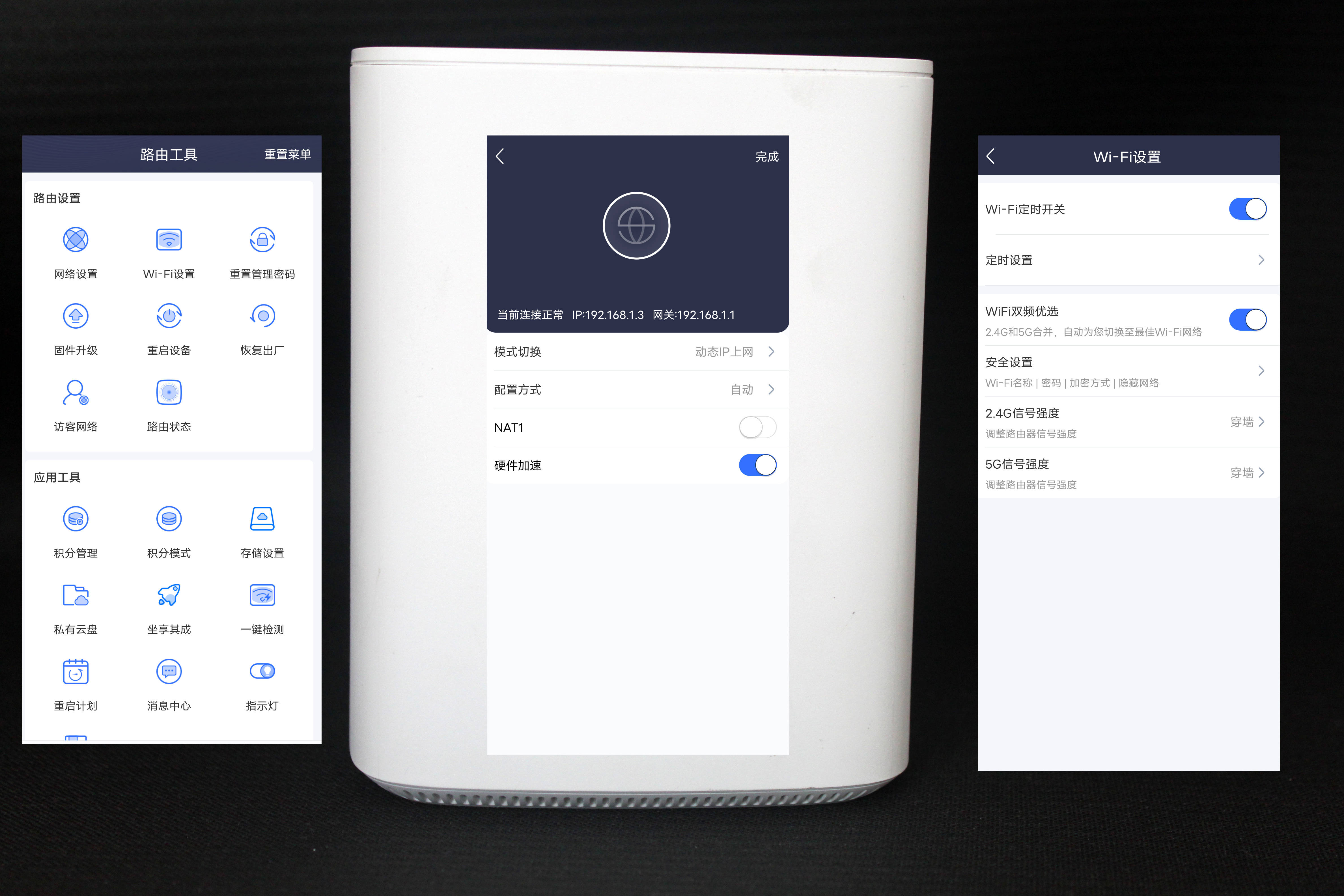 改进路由器和在APP路由器设置中建立接入网络非常简单,还可以检查路由器及其操作塞、CPU、内存利用和实时上载/下载速度。
