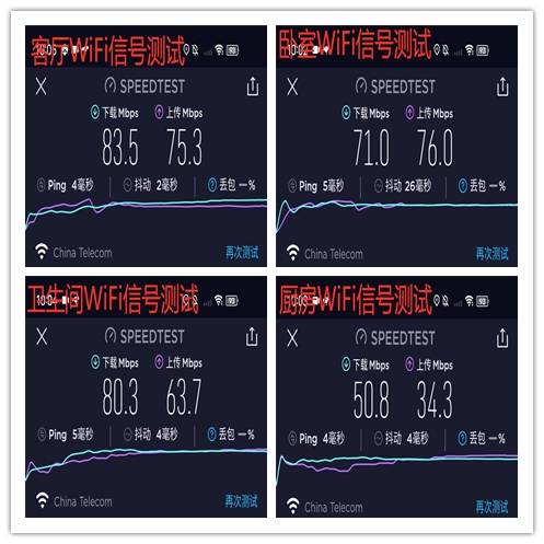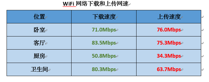 作为路由器,雇用了无线Balooban路由器。当然 看看它的无线网络信号使用快速测试第三方速度测试软件观察家庭信号强度是不可行的。图表显示了起居室、卧室、浴室和厨房的上下步调。特此说明一下,每个房间只进行过一次测试。数据可能有所不同。实验结果显示 除了厨房信号的弱点之外其余三个房间的无线网络是可靠的。这不是一个可怕的想法 穿墙。