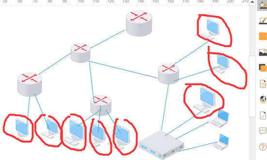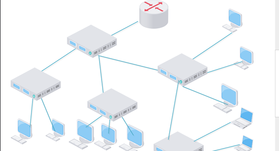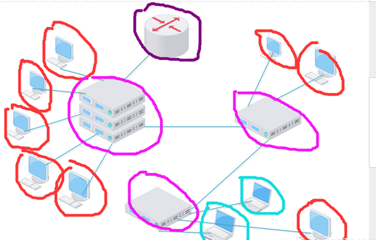其余5个开关连接到2台无线打印机和1台个人电脑。