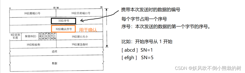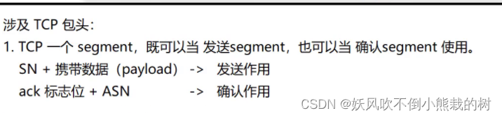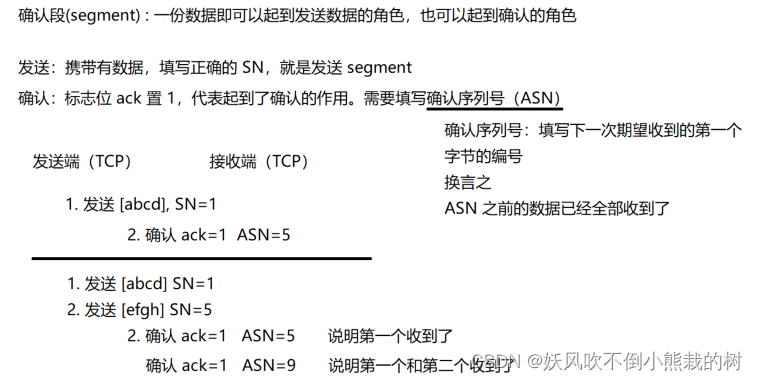 TCP独立地传送SN和ASN(序列号不同)。
