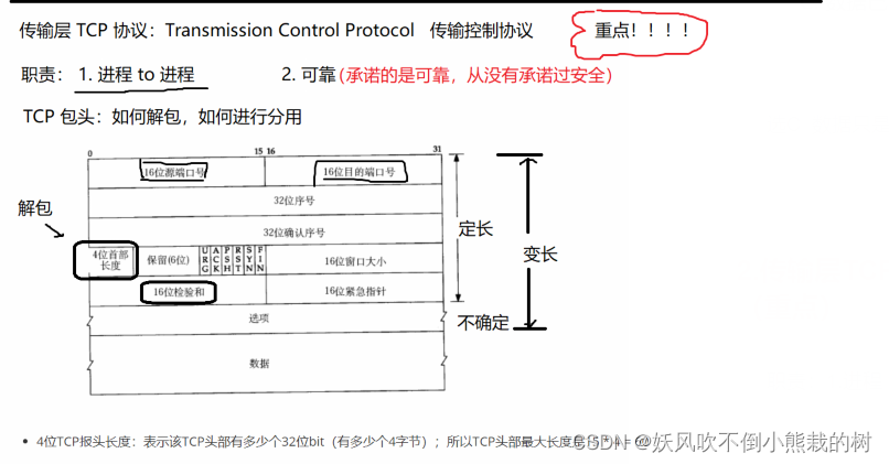 传输层TCP议定书:传输控制议定书(重点)。