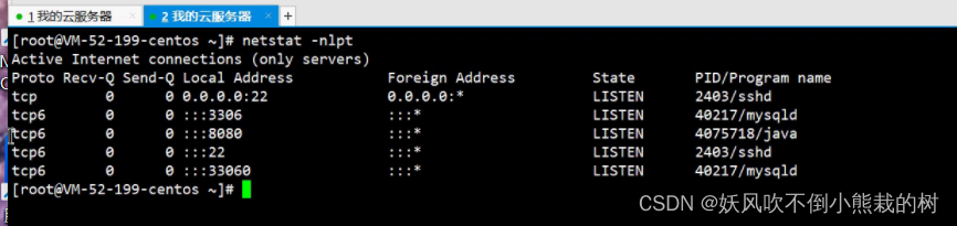 # Netstat- nlptn 显示所有数字, i 是只有监听状态的 TCP 。