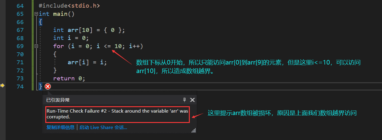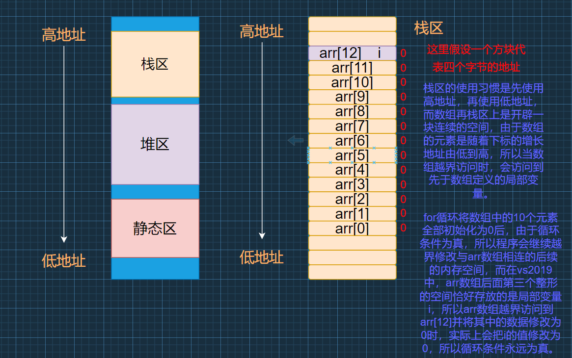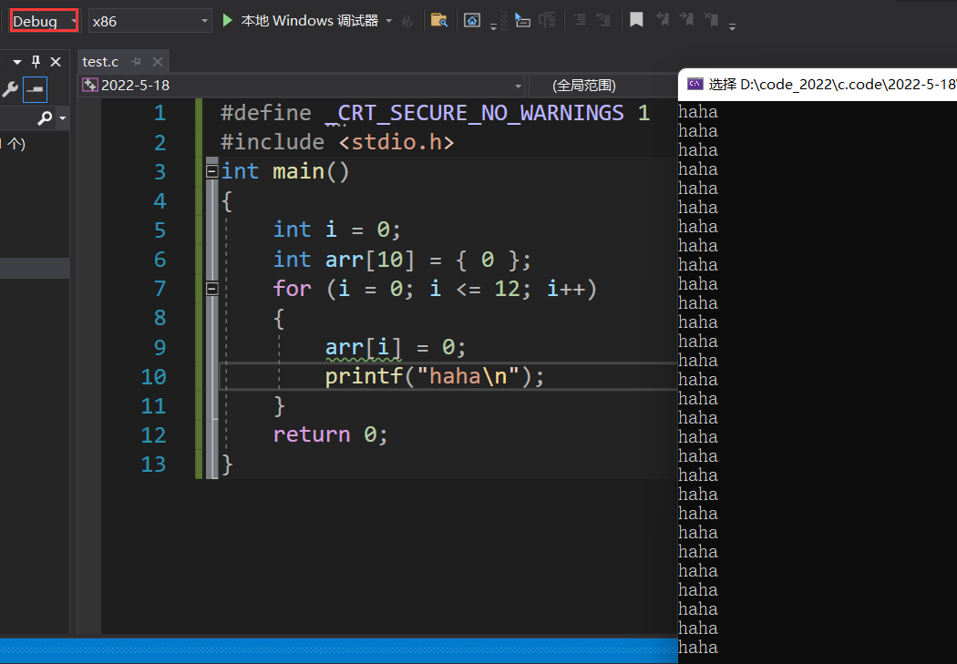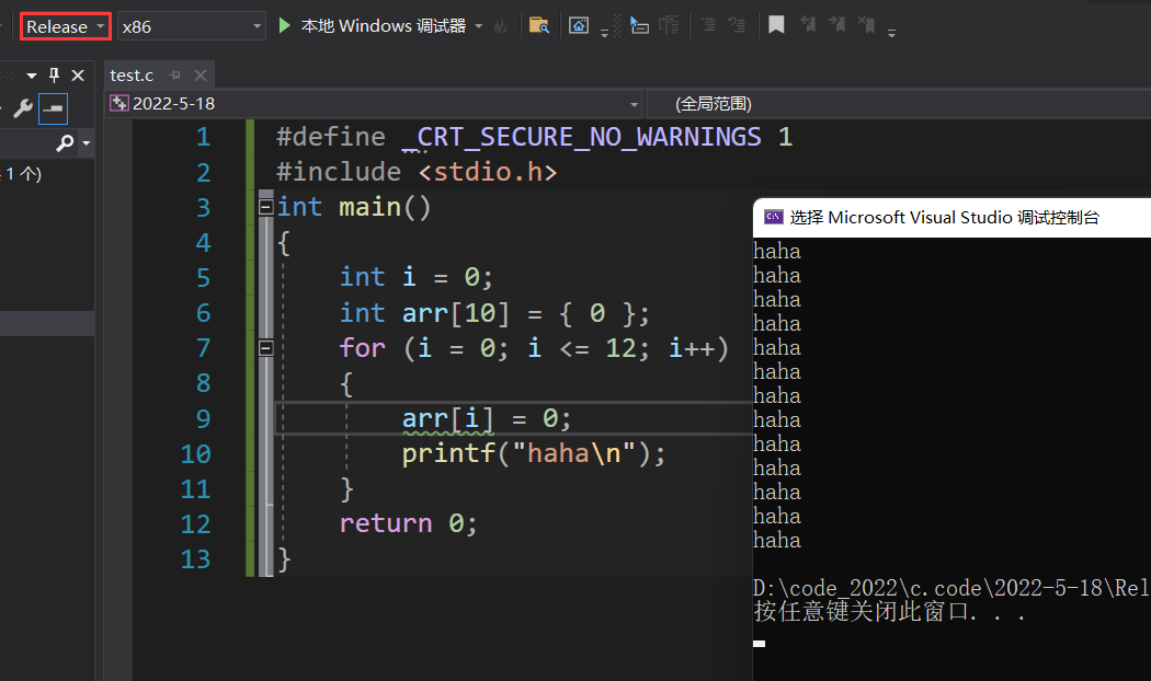 注:调试下的死亡周期与VS2019编译器(与存储习惯、阵列特点和功能有关)巧合。在其他编译者或VS版本中,死亡环路是不必要的。这只是巧合,是为了展示版本版本的品质。