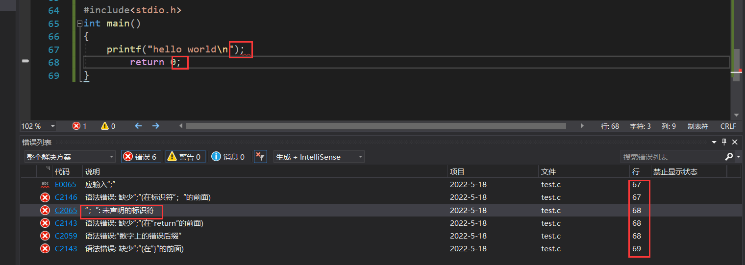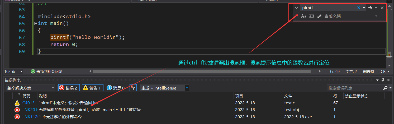 C语的核心语法往往有错误,如中文和英文符号的问题,直接看错误信息,然后双击错误发生地点的线索,基本上就是答案,也可以用经验处理,非常直截了当。