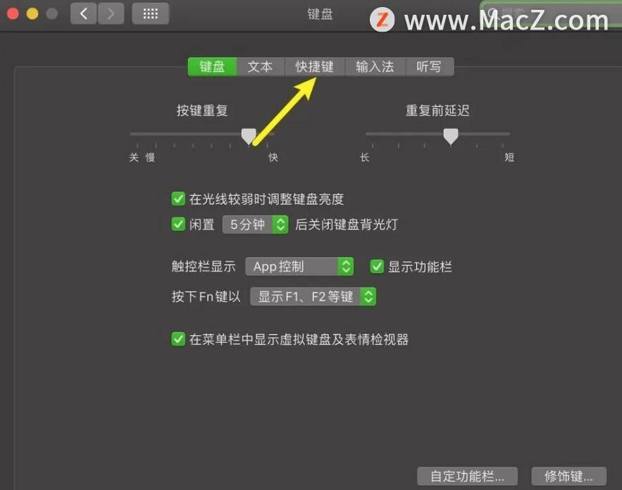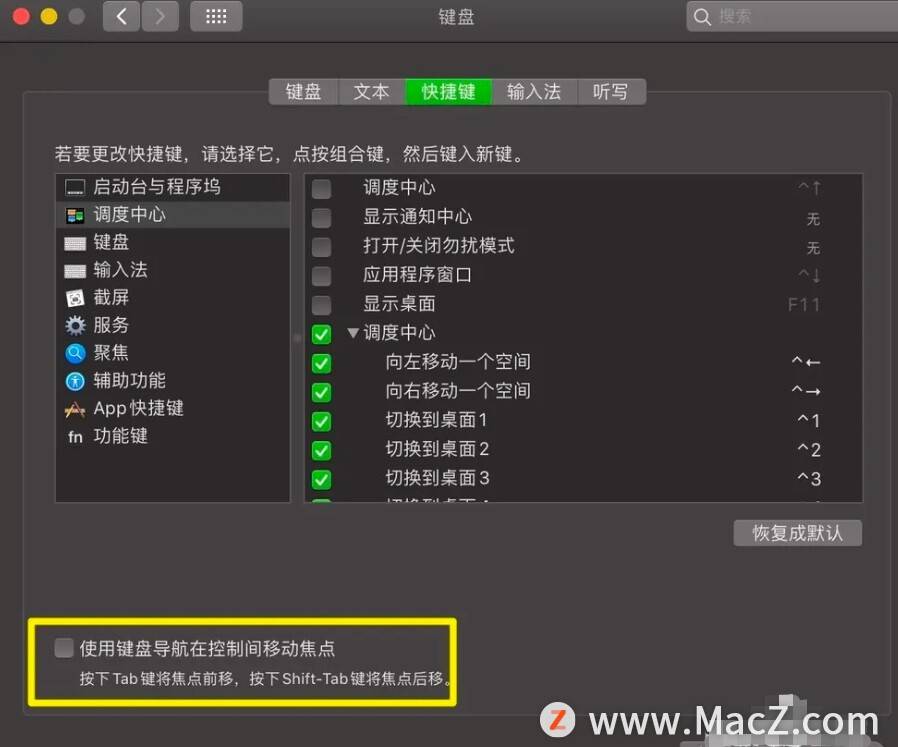4. 打开快捷键标签设置接口,并检查 " 使用键盘导航在控件之间传输焦点 " 旁边的框。